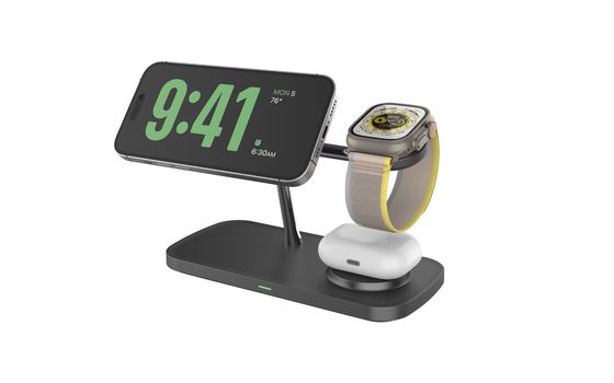 T268D Γρήγορη μεταλλική ασύρματη φόρτιση Σταθερό ρεύμα Μαγνητικό μήλο 3 σε ένα στέλεχος φόρτισης
